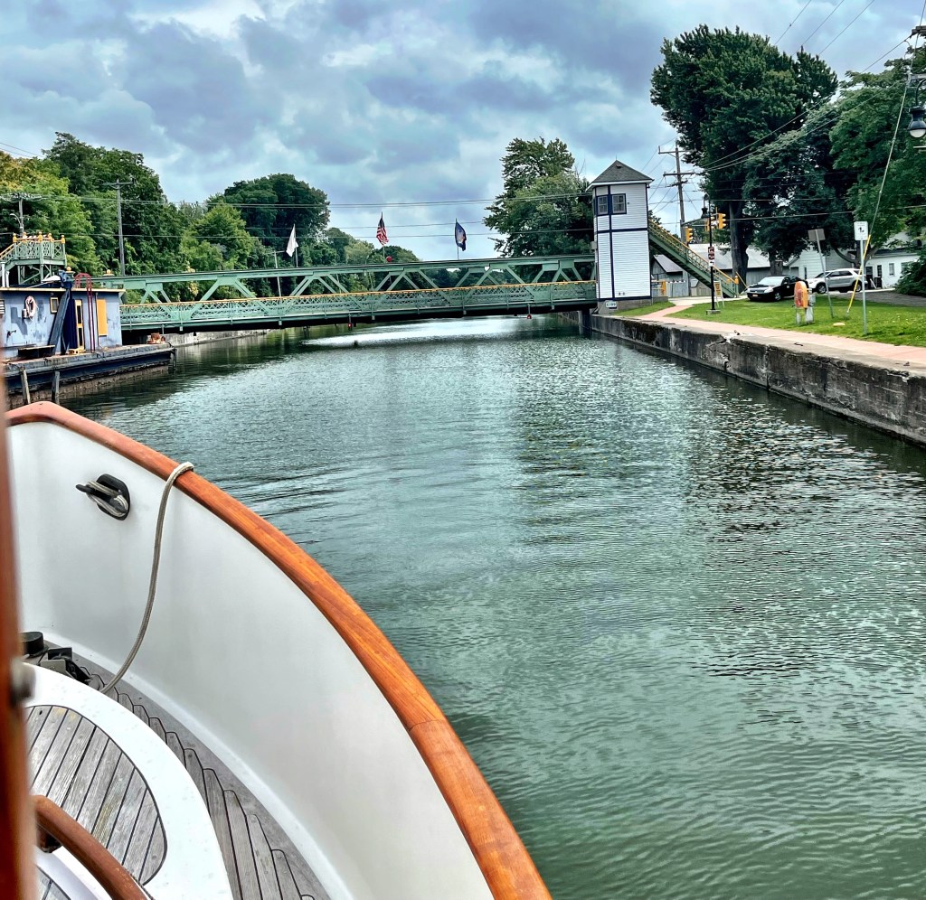 It’s very pastoral along the canal with apple orchards, corn fields. Very calm after wild Lake Erie.