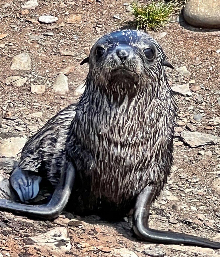 Today we were supposed to visit Shackeltons’s grave site but it was guarded by aggressive and gigantic elephant seals. They didn’t have to tell me twice to skip that section. I enjoyed the stroll to the other side of the station. I got to watch the cavorting baby fur seals, learning how to swim and fish and just be seals.