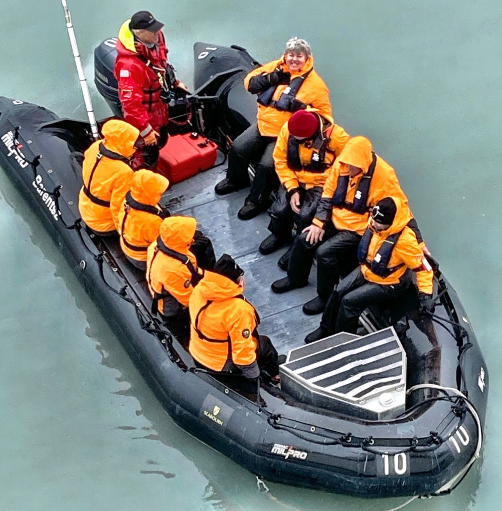 The zodiac landing was pretty exciting as the swell carried the boat to shore and then proceeded to wash over the stern. . It required a quick exit up the rock strewn beach. For the return they turned the boats around and with the engine out of the water pushed the boats out into the swell. My smile is happiness at a safe return to the ship. Next stop is the Falkland Islands and you guessed it more penguins.