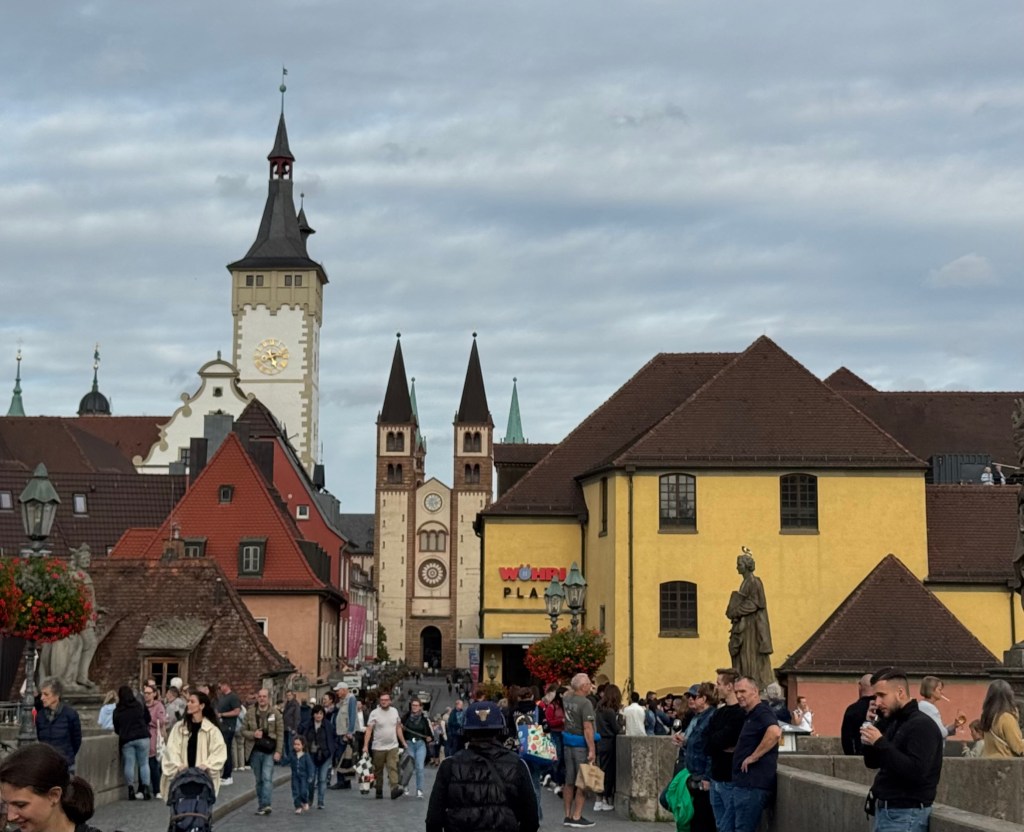 Wurzburg was a great town to visit and the wine was flowing. They are known for their white wine and everyone gravitated to the Philosphers bridge to enjoy a glass. Although there were a lot of tourists in town, the locals were out and about enjoying the early fall day.