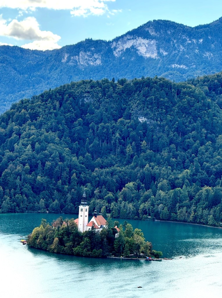 The view of Lake Bled from Bled Castle is iconic. I was lucky with weather as the day before was rainy and I toured the castle in the cave and a gigantic underground cavern but the Lake Bled viewing was perfect with no rain, a bit chilly with temps in the 50’s. The boat ride to the island is on the traditional Pletna boats that are rowed by hand. My knees were a bit intimidated by the 99 steps up to the church on the island, I made it, but not nearly so effortlessly as the 8 year old who sort of skipped up them with ease.
