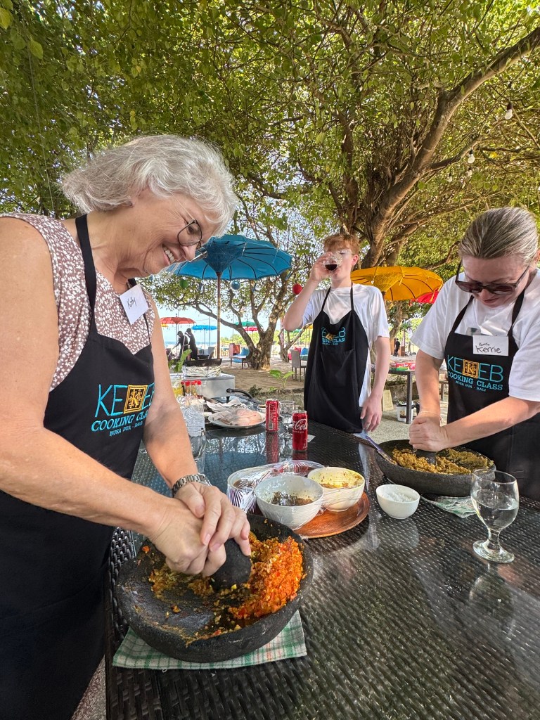 Kathy signed us up for an Indonesian Cooking school and it was really fun. I don’t know a lot about Indonesian food but we had so many left overs we were eating them for a week. I can say that making a paste takes a lot of ingredients, but the dishes were so rich in flavor as a result of a complex paste.